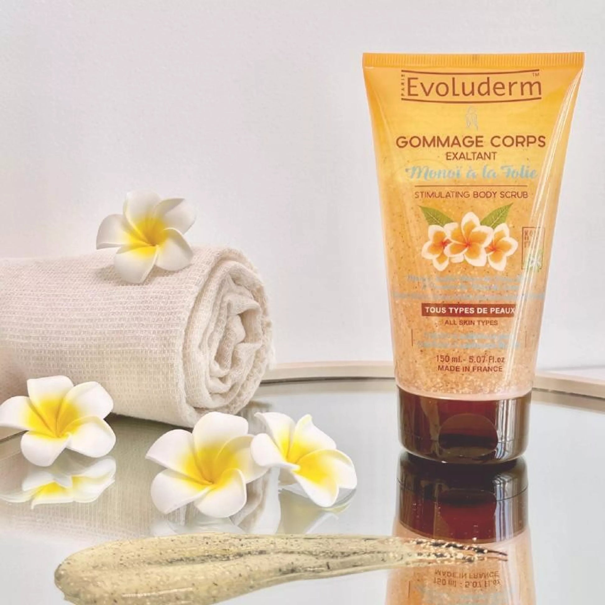 Formulé à 93% d'origine naturelle et végan, le Gommage Corps Exaltant Monoï à la Folie stimule le renouvellement cellulaire pour rendre la peau visiblement plus belle et soyeuse. Il exfolie l’épiderme avec douceur pour éliminer les cellules mortes à sa surface. Le Monoï de Tahiti - Appellation d'origine, issue de la macération de la Fleur de Tiaré dans de l’Huile de Coco, est un véritable élixir réparateur pour la peau. Secret de beauté venu des îles polynésiennes, il nourrit l’épiderme durablement. L’association de Sable Blanc de Bora-Bora et de Poudre de Noix de Coco débarrasse la peau de ses impuretés et l’adoucit jour après jour. La texture fondante de ce gommage dépose une caresse chaude et ensoleillée sur la peau, pour un irrésistible instant de soin. Sa fragrance exotique fait voyager vos sens sous les Tropiques et laisse sur le corps un voile délicieusement parfumé.
